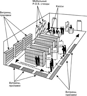 Рис. 3. Потоки покупателей в торговом зале и зоны продаж