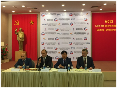 Ngày 11/12/2015, Đại sứ Liên bang Nga, cơ quan Đại diện thương mại Liên bang Nga, Công ty Zarubezh-Expo (Nga) phối hợp với Bộ Công thương, Phòng Thương mại và Công nghiệp Việt Nam (VCCI) tổ chức Họp báo nhằm giới thiệu Triển lãm Công nghiệp Việt – Nga lần thứ nhất và Diễn đàn doanh nghiệp Việt – Nga 2015 Họp báo có sự tham dự của ông M. Golikov, Trưởng Đại diện thương mại Liên bang Nga; ông Nikolaev Already – Giám đốc quan hệ Quốc tế Công ty Zarubezh-Expo (Nga) cùng đại diện Đại sứ quán Nga tại Việt Nam. Phía Việt Nam có ông Nguyễn Tuấn Hải, Phó Trưởng ban Quan hệ Quốc tế VCCI, đại diện Bộ Công thương, đại diện các cơ quan liên quan cùng sự hiện diện của đông đảo phóng viên các cơ quan báo chí trong nước và quốc tế. Theo ông Nguyễn Tuấn Hải, Phó Trưởng Ban Quan hệ Quốc tế VCCI: Việt Nam đã ký kết Hiệp định thương mại tự do với Liên minh Kinh tế Á – Âu gồm 5 nước: Nga, Kazakhstan, Belarus, Armenia và Kyrgystan vào cuối tháng 5/2015. Đây là một sự kiện quan trọng, tạo ra cơ hội cho các doanh nghiệp Việt Nam được tiếp cận với khu vực thị trường rộng lớn, đông dân và rất giầu tiềm năng giao thương và hợp tác đầu tư. Ông M. Golikov, Trưởng Đại diện thương mại Liên bang Nga cho biết: Triển lãm Nga – Việt lần thứ nhất và Diễn đàn doanh nghiệp Việt – Nga 2015 diễn ra từ 14-16/12/2015 tại Hà Nội sẽ cung cấp thông tin về thị trường, chính sách cũng như đối tác, trong khuôn khổ Hiệp định thương mại tự do giữa Việt Nam và Liên minh kinh tế Á – Âu, “ Chúng tôi sẽ tích cực phối hợp với phía cơ quan thương mại, công nghiệp của Việt Nam để cố gắng thúc đẩy tốt nhất hợp tác mà hai bên đạt được trong quá trình này", ông Golikov nói. Theo ông Nikolaev Already, Giám đốc quan hệ Quốc tế Công ty Zarubezh-Expo, Triển lãm sẽ thu hút khoảng 120 doanh nghiệp đến từ khắp mọi miền trên toàn lãnh thổ nước Nga, trong đó có những doanh nghiệp công nghiệp hàng đầu trên thế giới, với các thành tựu mới nhất trong các lĩnh vực năng lượng, chế tạo máy, giao thông vận tải, khai thác mỏ, hóa chất, y học, nông nghiệp và các ngành công nghiệp công nghệ cao. Tham gia diễn đàn, doanh nghiệp Việt Nam sẽ được cơ quan chức năng của Nga đưa ra các cơ chế thu hút đầu tư vào các tỉnh, thành của Nga, gặp gỡ các đối tác tiềm năng và uy tín của Liên bang Nga. Được biết, trong 5 năm gần đây dù đã có mức tăn trưởng 20% mỗi năm nhưng kim ngạch thương mại song phương Việt – Nga vẫn ở mức khiêm tốn so với tiềm năng. Qua triển lãm lần này, các nhà tổ chức hy vọng sẽ nâng mức kim ngạch lên 10 tỉ USD vào năm 2020.