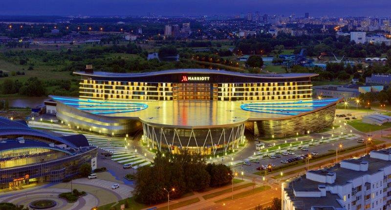 Minsk Marriott Hotel 5* (проспект Победителей, 20) - новейший пятизвёздочный гостиничный комплекс, расположенный от места проведения выставки, «Футбольный манеж», в 200 метрах! Высочайший уровень обслуживания, развитая инфраструктура отеля, прекрасные комфортабельные номера.