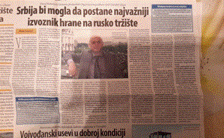 Наибольшую аудиторию собрал Круглый стол совместно с Министерством сельского хозяйства и охраны окружающей среды. «Расширение сотрудничества России и Сербии в агропромышленном секторе». «Современная российская техника для сельскохозяйственной отрасли». Как известно, Министр сельского хозяйства Сербии Снежана БОГОСЛАВЛЕВИЧ-БОШКОВИЧ предложила организовать широкомасштабную программу сотрудничества со ссылкой на слова Президента Сербии Т.НИКОЛИЧА о том, что «особую перспективу взаимодействия с Россией он видит в области сельского хозяйства». Об опыте взаимодействия сельхозпредприятий рассказал Экономический советник Посольства Сербии в РФ Марьян БОЖОВИЧ. Были обсуждены возможности взаимодействия в контексте «Меморандума между Федеральной службой по ветеринарному и фитосанитарному надзору РФ и Государственной инспекцией по безопасности пищевых продуктов и ветеринарии Сербии». Председатель Ассоциации ТПП РС по сельскому, лесному и водному хозяйству Ненад БУДИМОВИЧ сообщил о расширении на 36 % поставок в Россию сербской плодоовощной продукции. Генеральный директор московского ООО «Геологоразведка» С.В.ИЗЮМОВ представил доклад «Применение геофизических методов для повышения урожайности в сельском хозяйстве» и рассказал о лечении животных методами КВЧ-терапии. В работе круглого стола принял участие Заместитель Министра сельского, лесного и водного хозяйства Боснии и Герцеговины Борис ПАШАЛИЧ, Генеральный директор фирмы «Озон» из Санкт-Петербурга Д.Е.ГАРМАШОВ, представители компаний «ПИП Сербия», «Вино Жупа», «Крушевац», «Флораком», «Фрутс Плэнет», На вопросы ответили Миладин ШЕВАРЛИЧ - Президент Сербской Ассоциации экономистов сельского хозяйства и Мирослав КРСТИЧ, Генеральный секретарь Сообщества сельхозинженеров Сербии, Директор ООО «Центр по производству сельскохозяйственной продукции» Елена ПРОДАНОВИЧ, Директор АО «КОМФИТРЕЙД» Олег ДРИЗА, Член Городского Совета г.Крушевац Небойша ПАУНОВИЧ, Директор компании «ГРОМЕКС» Милич ГРОМОВИЧ, Начальник Сектора ветеринарии Минсельхоза Сербии Нина ДАМЬЯНОВИЧ. С докладом о сотрудничестве с Сербией в агропромышленной сфере выступили Генеральный директор ООО «БИЗНЕС-ГАРАНТ» Александр ФАТЬЯНОВ, выпускник Курской Сельхозакадемии и Директор представительства в Сербии компании «ICL Services and Solutions» Игорь КАТУКОВ. Представили образцы продукции директор сербского филиала холдинга «РОСТСЕЛЬМАШ» Золтан ТЕРЕЧ, Директор фирмы «Yu Aloe OOO» Юлия ОБРАДОВИЧ, Директор фирмы «Котор ВАРОШ» Милан ВАРОШ, представители ООО «ЗЛАТИБОРАЦ». Особое внимание участников и гостей вызвал новейший комбайн –VECTOR 420, выставленный перед главным входом на выставку.