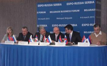 Не менее содержательным стал круглый стол «Актуальные вопросы взаимодействия России и Сербии в области традиционной и альтернативной энергетики, разработки энергосберегающих технологий», организованный при личном участии Министра энергетики и горнодобывающей промышленности (Новая структура) Александра АНТИЧА. В связи с решением России прекратить участие в проекте «Южный поток» из-за неконструктивной позиции Еврокомиссии были обсуждены перспективы подключения энергосистемы Сербии к создающемуся на границе с Грецией газовому хабу для потребителей в Южной Европе. С учетом важности проекта, были приглашены: Начальник экономического отдела Торгпредства России А.А.ЛЕСИН, руководители компаний в Сербии: НИС, «Югоросгаз» - ГК «Ростехнологии» (А.Е.ОРЕШИН), «Силовые машины» (М.В.ЦВЕТКОВ), Главный специалист Управления внешних связей ОАО «Зарубежнефть» М.В.БАЙКОВ, «Альянс ВК» (Любица ВУКОТИЧ), НПО «Орион», «ПожТехСервис», «Сиб Трейд Сервис», О деятельности своей компании подробно рассказал Генеральный директор АО «PETROPROCESS» Джордж ЧИРИЛОВИЧ. Первый заместитель Руководителя Исследовательского Центра, специалист по нейтронным генераторам ВНИИА им. Н.Л.Духова (Госкорпорация «РОСАТОМ») Д.И.ЮРКОВ представил доклад: «Диагностика месторождений. Предупреждения межколонных давлений и их ликвидация. Состояние и перспективы развития во ФГУП «ВНИИА» аппаратуры радиоактивного поиска». Об инвестиционной деятельности в Сербии рассказал менеджер Департамента финансирования экспорта «Внешэкономбанка» С.О.КАРЕЛИН. Выставка «Expo-Russia Serbia 2015» рассматривалась устроителями в качестве логического продолжения «Конференции деловых кругов», состоявшейся в ТПП РФ, в которой активное участие приняла делегация бизнесменов Республики Сербской, во главе с помощником министра торговли РС Душанкой ТЕГЕЛТИЯ и заместителем председателя ТПП Михайло ВИДИЧЕМ. Участники круглого стола в Белграде упоминали о серьезных инвестиционных проектах таких структур как: транспортная компания «Kozaraprevoz» (Нови-Град), компания по строительству и обслуживанию дорог «Zvornik Putevi» Зворник, многопрофильная компания «BOKSIT» Миличи, комбинат «Alumina», Зворник, фабрика «Duvan», инжиниринговая фирма «Grad», транспортная фирма «Semberija Transport» и др. На заседании Второго Белградского бизнес-форума высказаны оценки экономического сотрудничества Республики Сербской с Россией, в том числе реализации проектов «Зарубежнефти» по поиску нефти и газа, постройка ТЭЦ «Углевик-3», увеличения производительности НПЗ «Брод» и «Модрич». Рассматривались перспективы сотрудничества в контексте обсуждения вопроса в ходе бесед Президента РС Милорада ДОДИКА с Вице-спикером Госдумы С.В.ЖЕЛЕЗНЯКОМ и Мининдел России С.В.ЛАВРОВЫМ. Вице-премьер министр Сербии на стенде ОАО «Зарубежнефть»