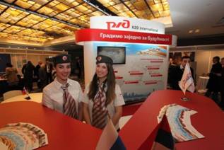 В последующие дни для участников выставки было организовано совместно с сербскими министерствами пять круглых столов, модератором которых, по решению оргкомитета, являлся Директор по международному сотрудничеству ОАО «Зарубеж-Экспо» А.П.Николаев. Деловая программа открылась проведением круглого стола «О путях совершенствования транспортной системы на Балканах в процессе развития торгово-экономических отношений России и Сербии», подготовленного совместно с Министерством транспорта, строительства и инфраструктуры Сербии (новая структура). В ходе оживленной дискуссии был рассмотрен важнейший инфраструктурный проект на территории Сербии по строительству и обновлению железнодорожных магистралей, на реализацию которого Россия выделила целевой экспортный кредит. Были рассмотрены практические аспекты российско-сербской программы электрификации железных дорог в соответствии с европейскими требованиями в русле «Национального плана развития железнодорожной инфраструктуры» и создания новой карго-системы. С интересными обстоятельными докладами выступили представители российских транспортных структур в Сербии. В обсуждении принял участие Заместитель Генерального директора госкомпании «Железнице Србије» по стратегии, развитию и общим вопросам Райко КОВИЧ, Первый заместитель Директора филиала ОАО «РЖД Интернешнл» в Белграде Мансурбек СУЛТАНОВ, Экономический советник Посольства Сербии в РФ Марьян БОЖОВИЧ, Заместитель Торгпреда России А.А.ЛЕСИН, курирующий вопросы транспортной инфраструктуры, Директор компании «Прогресс» Митар ДРОБНЯКОВИЧ, Управляющий компании «Дунайская логистика» Милан МАСЛАЧ, Директор Представительства в Белграде компании «Строй-трест» Е.А.ЯКОВЛЕВ, Директор транспортной компании «АКРОСС» Владан ЛАЗАРЕВИЧ, представители ОАО «Ульяновский автомобильный завод», Международный Донской порт, НТП «Ресурс», «СК-Мост», «Транслоджик». Как отметил Начальник отдела экспортного развития Корпорации по развитию предпринимательства Ульяновской области П.В.БАЛАНДИН, в ходе мероприятия были подготовлены условия для заключения нескольких контрактов предприятий Ульяновской области с сербскими партнерами. Российско-сербскому сотрудничеству в авиационной сфере было посвящено заседание с участием Директора Департамента гражданской авиации Республики Сербия Мирьяны ЧИЗМАРОВОЙ, Гендиректора АО «KONELEK», выпускающей авиазапчасти и навигационное оборудование Александра ЕКИМЕДЖИЧА. В работе круглого стола принял участие с докладом Атиф ХОДЖИЧ, Главный советник Министерства внешней торговли и экономических отношений Боснии и Герцеговины. Как отметил в своем приветствии участникам и гостям Заместитель Министра транспорта РФ, Руководитель российской части Российско-Сербской рабочей группы по транспорту Н.А.АСАУЛ: «Данная выставка является солидной площадкой для встреч представителей власти и бизнеса, вносит существенный вклад в укрепление экономических связей, а также повышает конкурентоспособность железнодорожного транспорта России и Сербии. Новый УАЗ на выставке Экспозиция «РЖД Интернешнл»