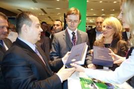 Следует отметить, что по сравнению с предшествующей выставкой повысился представительский уровень, что нашло выражение в участии Первого заместителя Председателя правительства РС, Сопредседателя Российско-Сербского МПК по торговле, экономическому и научно-техническому сотрудничеству, Министра иностранных дел Сербии Ивицы ДАЧИЧА, Чрезвычайного и Полномочного Посла Российской Федерации А.В.ЧЕПУРИНА, Директора Сектора промышленности и сельского хозяйства ТПП Сербии Еши ЕРЧИЧА, Торгового представителя России в Сербии А.Н.ХРИПУНОВА, сотрудников «Русского дома», cпецпредставителей глав государств балканских стран. В своем выступлении на открытии выставки Первый вице-премьер отметил, что “Российская Федерация входит в тройку стран по объему внешнеторгового оборота Сербии наряду с Италией и Германией. Мы хотим развивать сотрудничество с Россией в области энергетики, повысить объем товарооборота и расширить структуру товаров, которые в нем представлены, а также до конца завершить старые и начать новые инфраструктурные проекты”. Он напомнил, что российские компании в Сербии присутствуют в банковском секторе, в энергетике и других отраслях, и призвал инвесторов из России «усилить свое присутствие в областях, где есть двусторонние интересы». По данным сербской стороны, взаимный товарооборот по итогам 2014 года составил 2,5 миллиарда евро, что на 300 миллионов больше чем в предыдущем году. По российским данным, эта сумма составляет 3,4 миллиарда долларов, показав рост в 12,3%. По его мнению, в таком возрастании товарооборота есть существенный вклад международной выставки «Expo-Russia Serbia 2015». В свою очередь, российский Посол зачитал Приветствие С.В.ЛАВРОВА, в котором отмечалась роль выставки в качестве «полезной платформы для сотрудничества российских и сербских компаний, в том числе развития межрегиональных связей. В нынешней непростой ситуации в Европе востребованность таких усилий трудно переоценить». Торжественная церемония открытия выставки