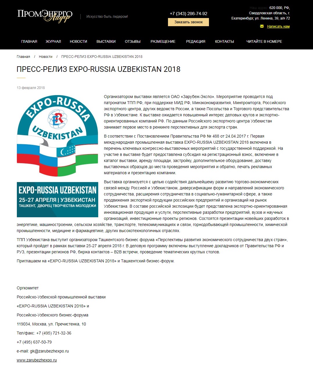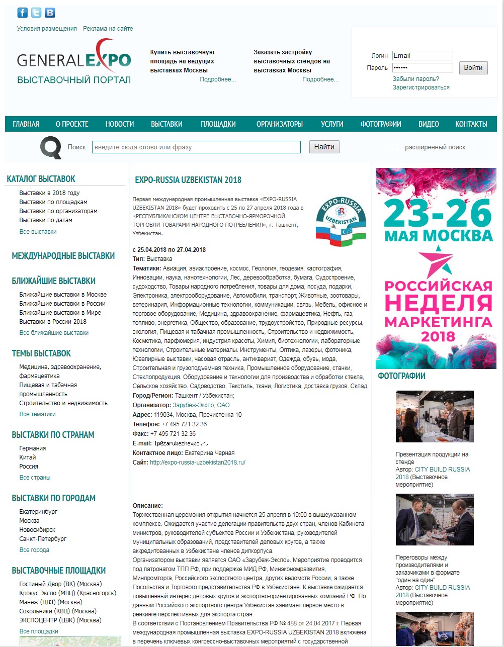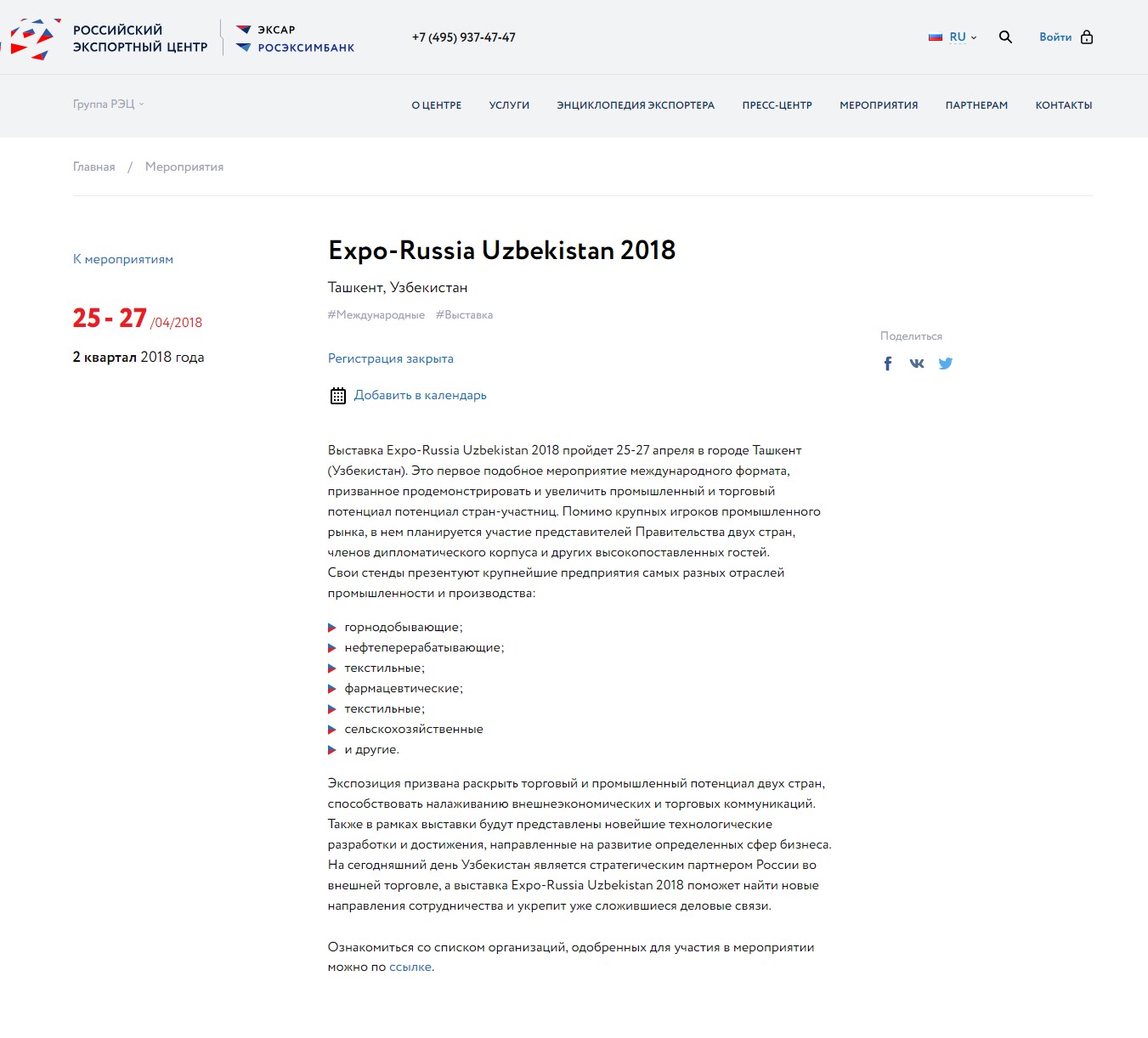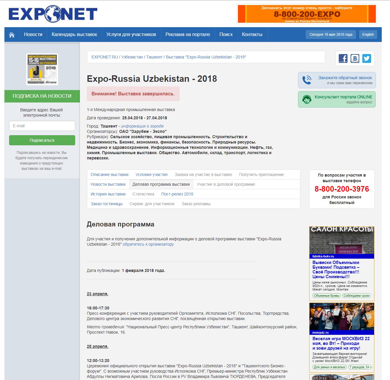 Сайт мероприятия: http://expo-russia-uzbekistan2018.ru/